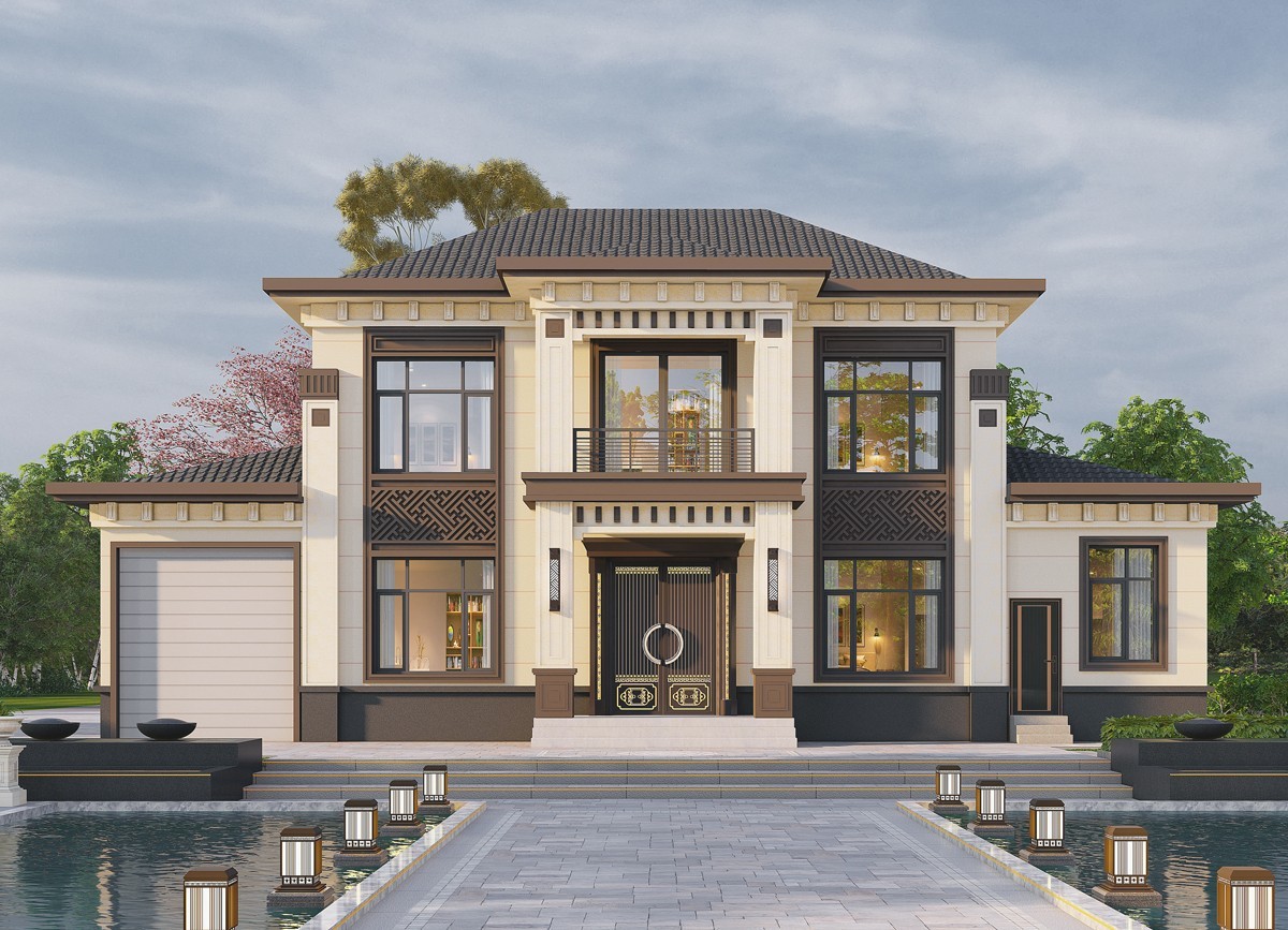 璧山011 两层新中式(15.43x12.66米)-【易设计】